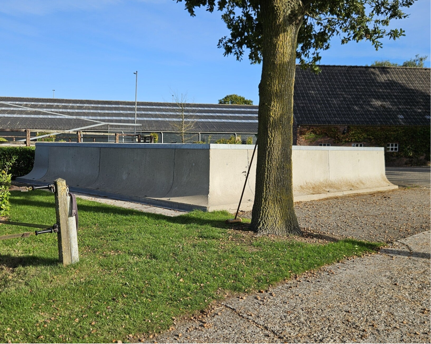 Eindelijk kon het gras gemaaid worden op woensdag 5 juni. Een paar spannende dagen, of het daadwerkelijk wel droog zou blijven. Zaterdagavond nog een dreigende donkere lucht, maar de buien trokken er gelukkig langs. Op zondag kwam loonbedrijf Looman uit Zelhem met de pers. Een aantal rijen waren te hoog, dus moest Robert er eerst met trekker en tank overheen rijden, zodat de pers niet vast liep. Met de grote shovel met balenklem en de kleine shovel met aanhanger hebben we 79 balen op de opslagplaats kunnen zetten. De 1e snede van 2024 is binnen!